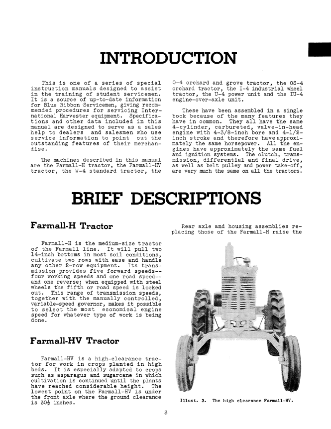 Models: Farmall H, HV, I4, IU4, U4, and W4