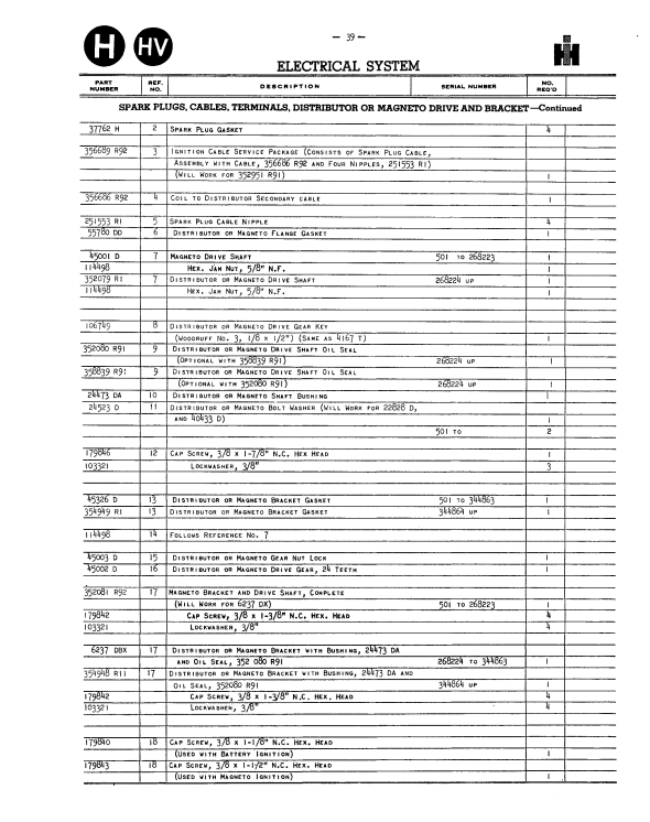 International Harvester Farmall H and HV Tractor - Parts Catalog